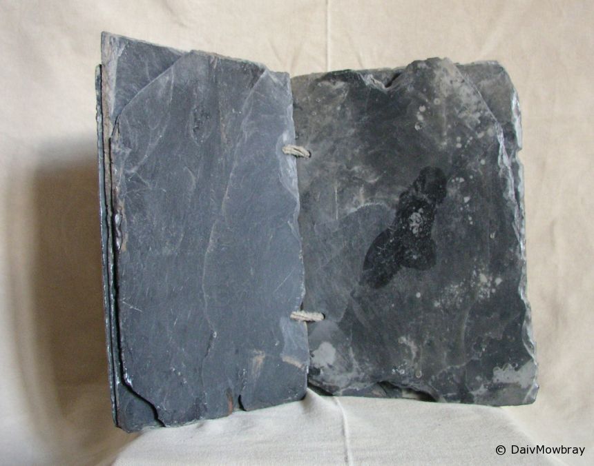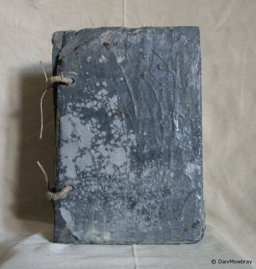 Book works Book of Thoughts #1 1997 Daiv Leave a comment Description: Material: Slate, ink wax, rope Size: 20 x 30 x 4 Local Link: Collection: Private Price: Domain: Exhibition: Client: Book of Thoughts page 3 Book of Thoughts