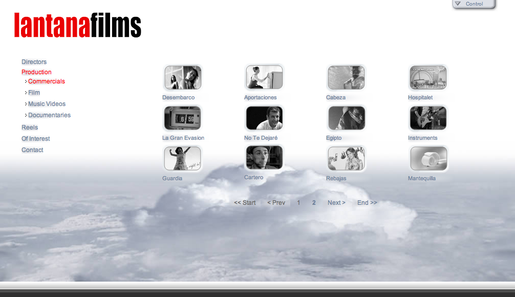 Screen shots of the Lantanafilms web site.