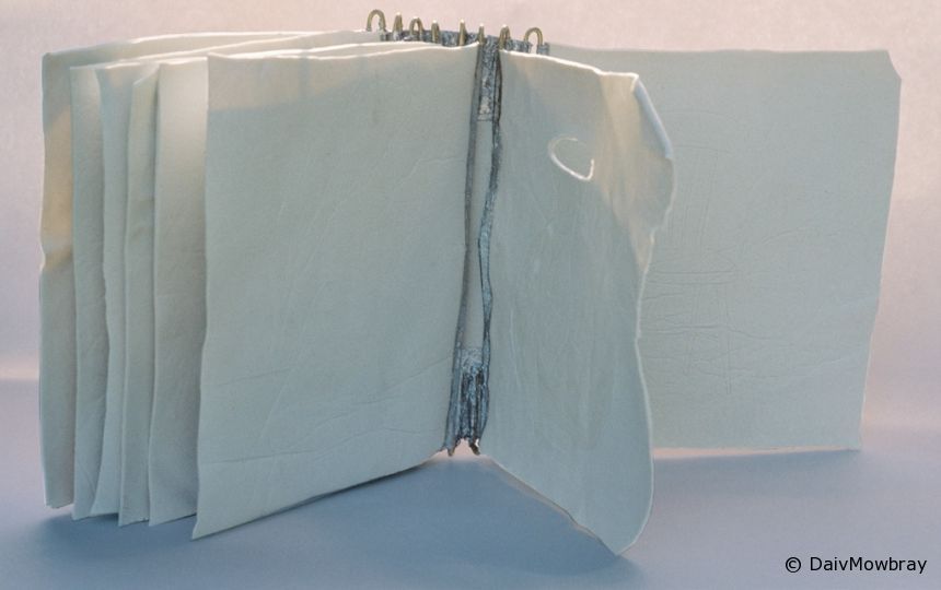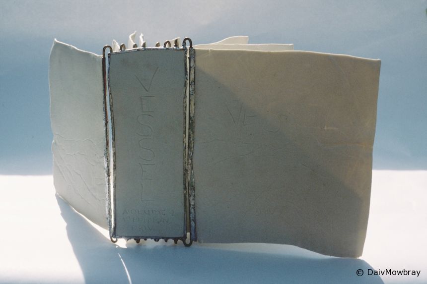 Book works Vessels 1993 Daiv Leave a comment Size: 18 x 21 x 8 Material: porcelain Description: A porcelain book of vessels, presents engraved images of vessels. Light passes through the lines of the images.